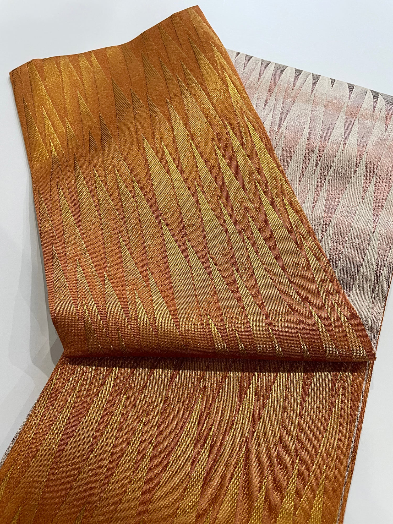 OICHI SILK's half-width obi "Gold brocade/scale pattern"