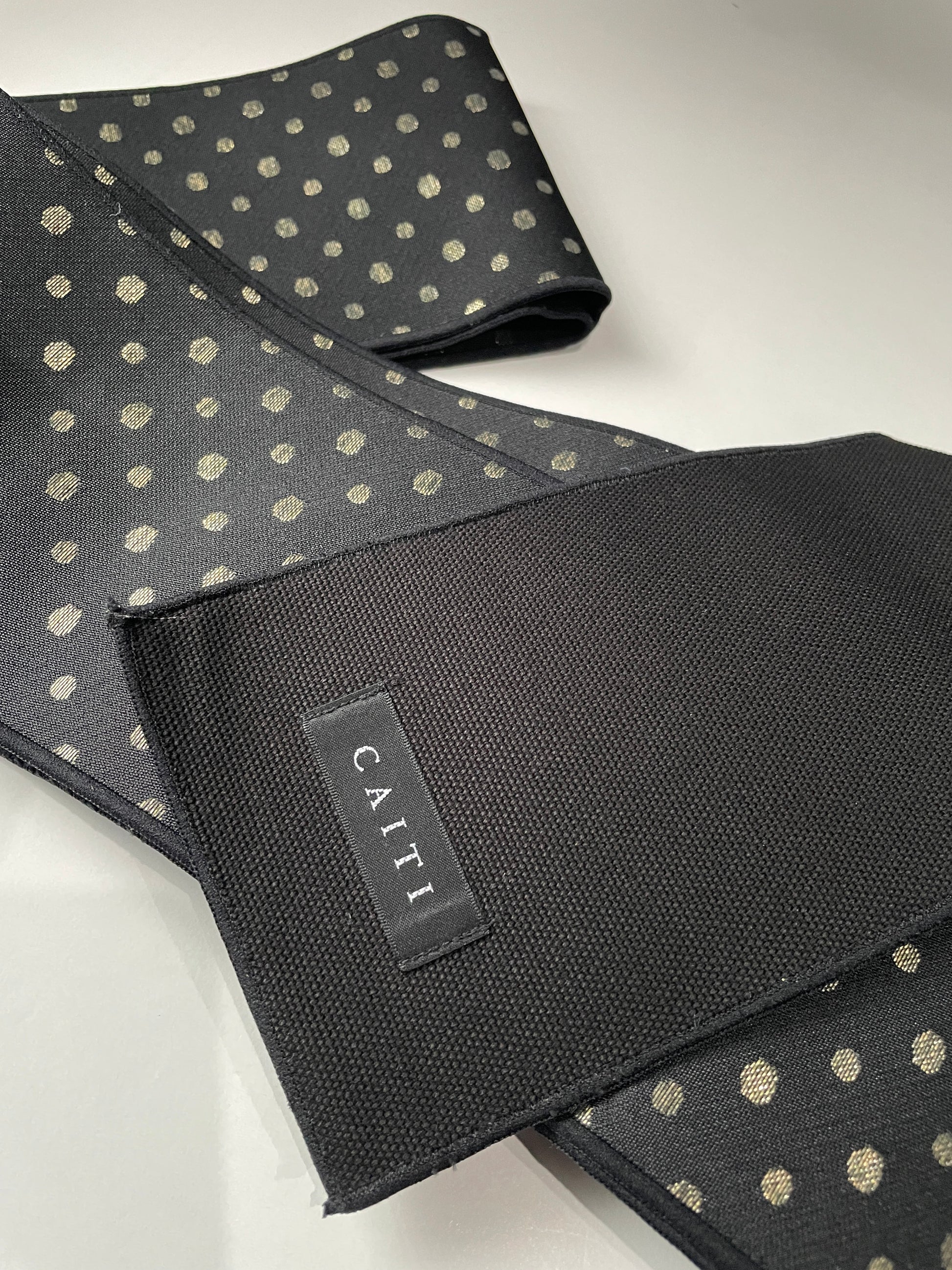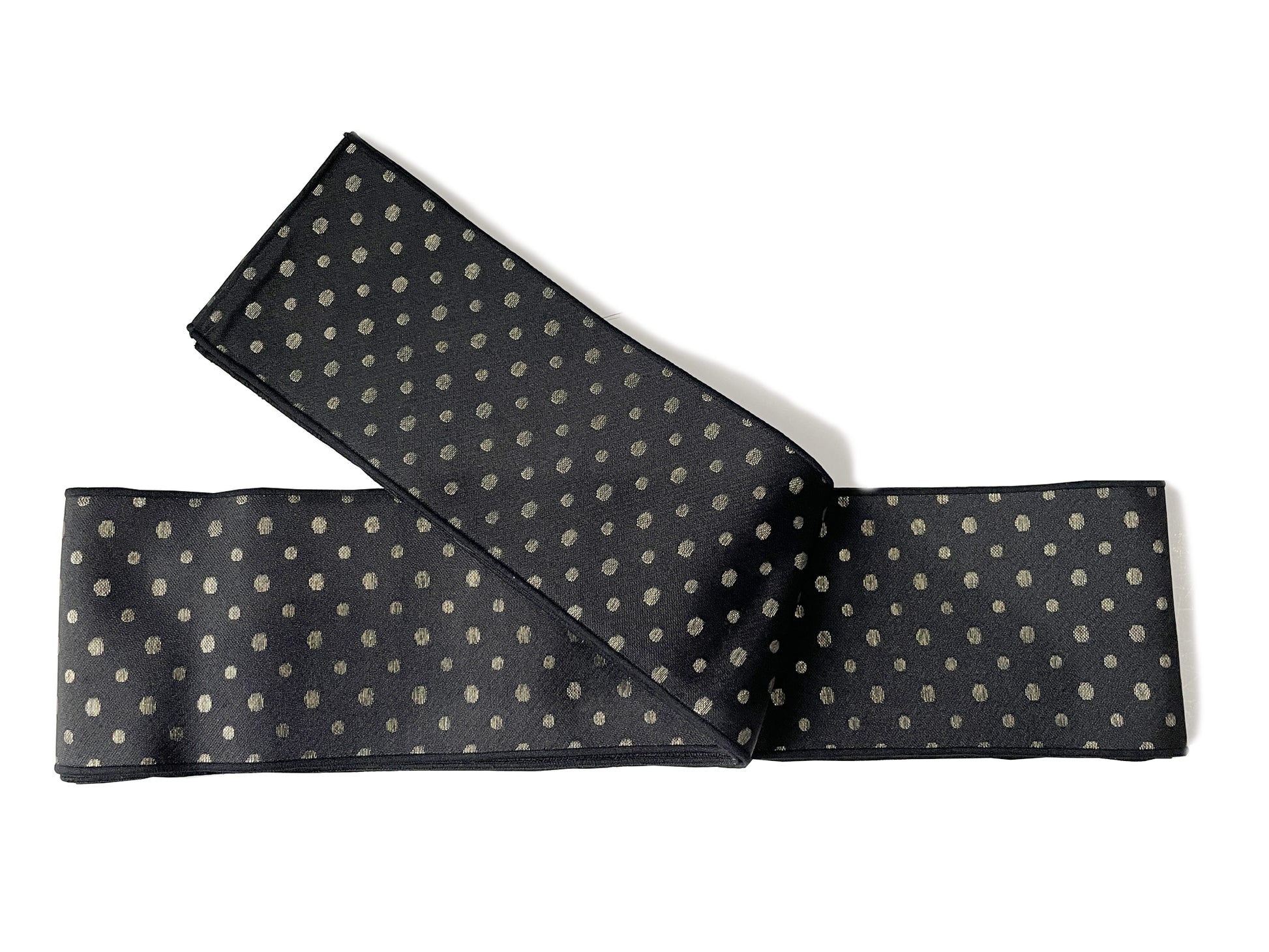 中村金襴のメンズブランド[CAITI]の角帯です。卓越した「引箔織」の技術は、無駄な色を使わない控えめな上品さを保ちながらも、男性の腰元をしっかりとクールに飾ります。
