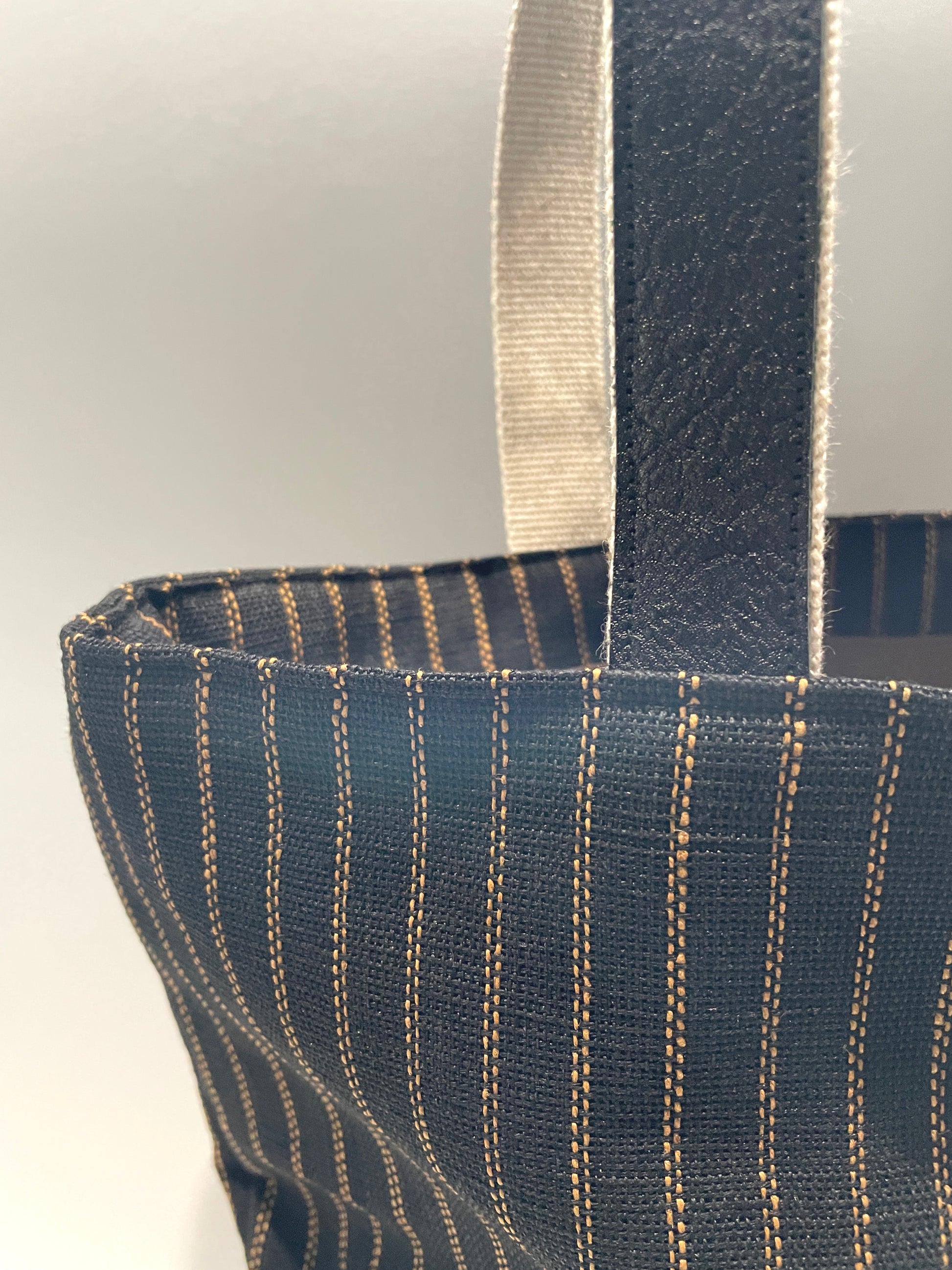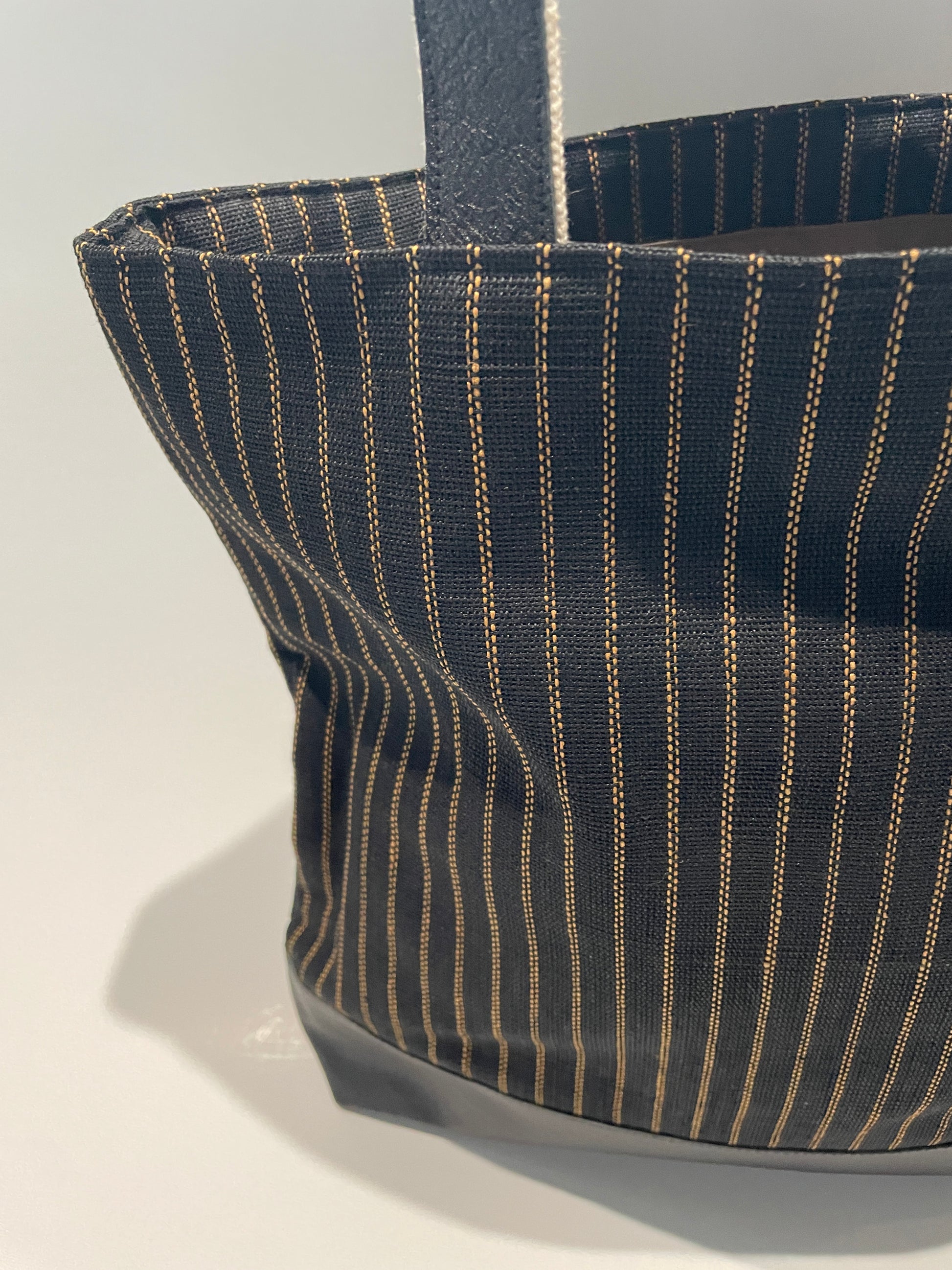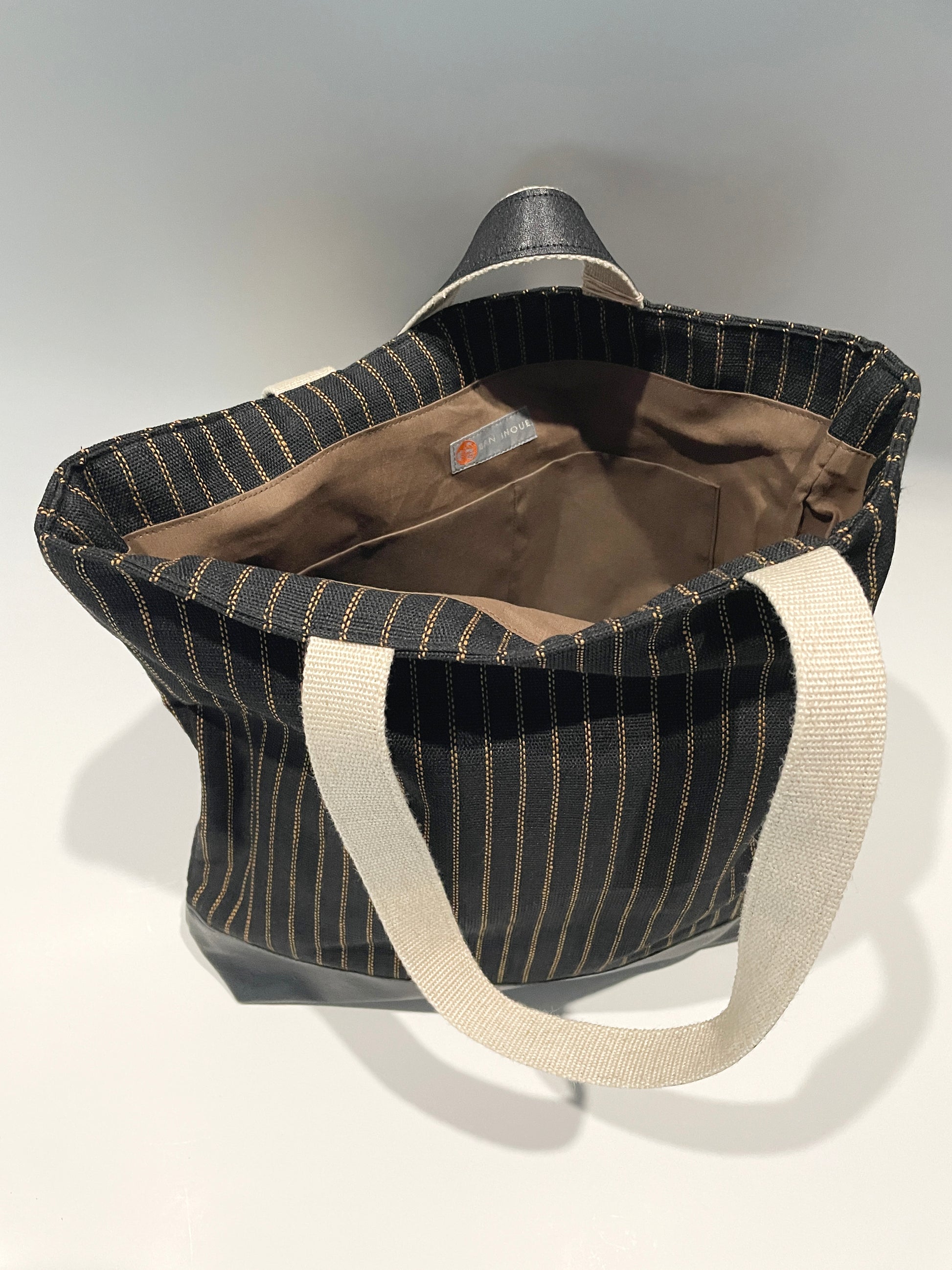 (井上企画・幡)メンズバック「麻トート(縞)color/黒」