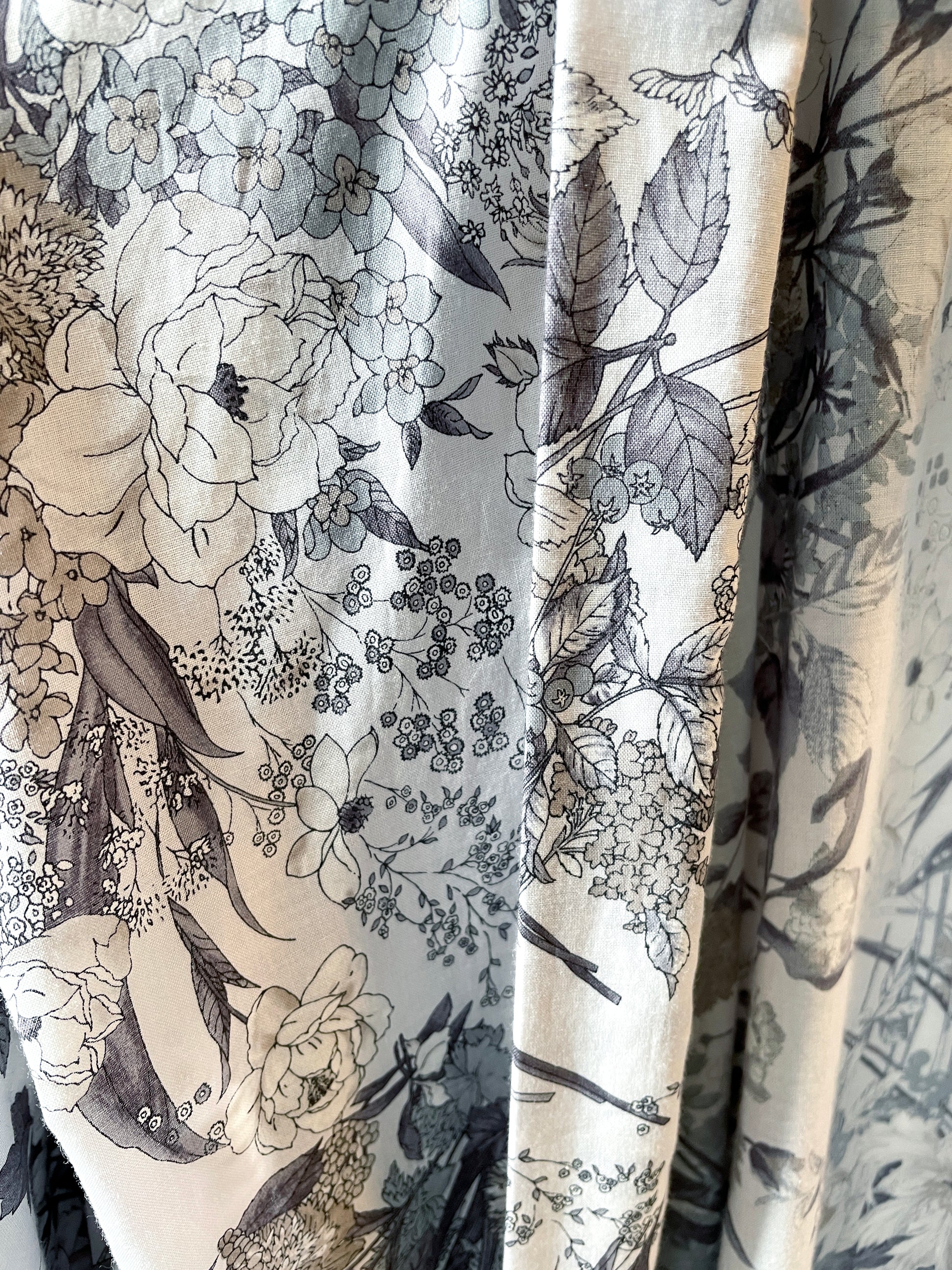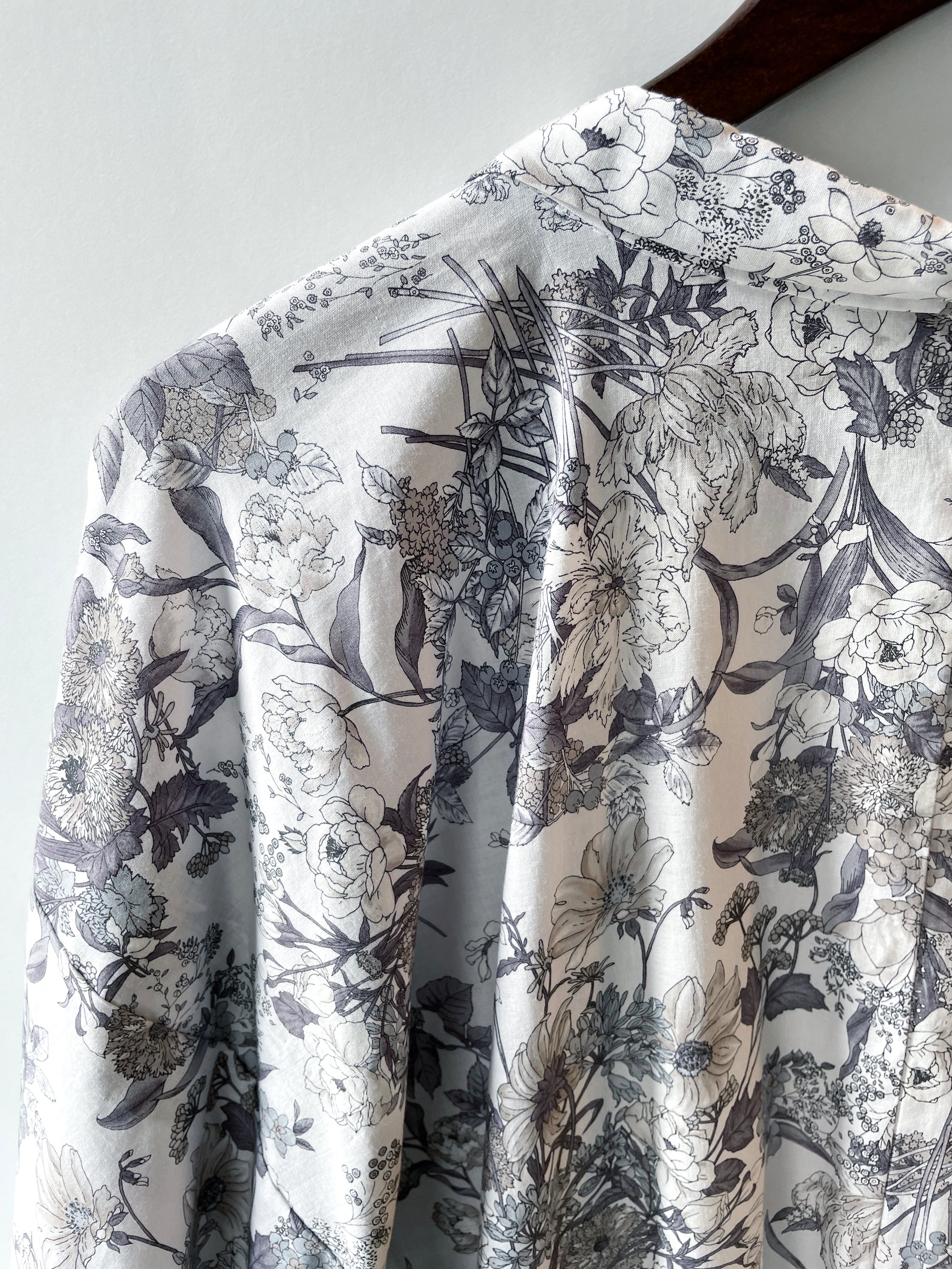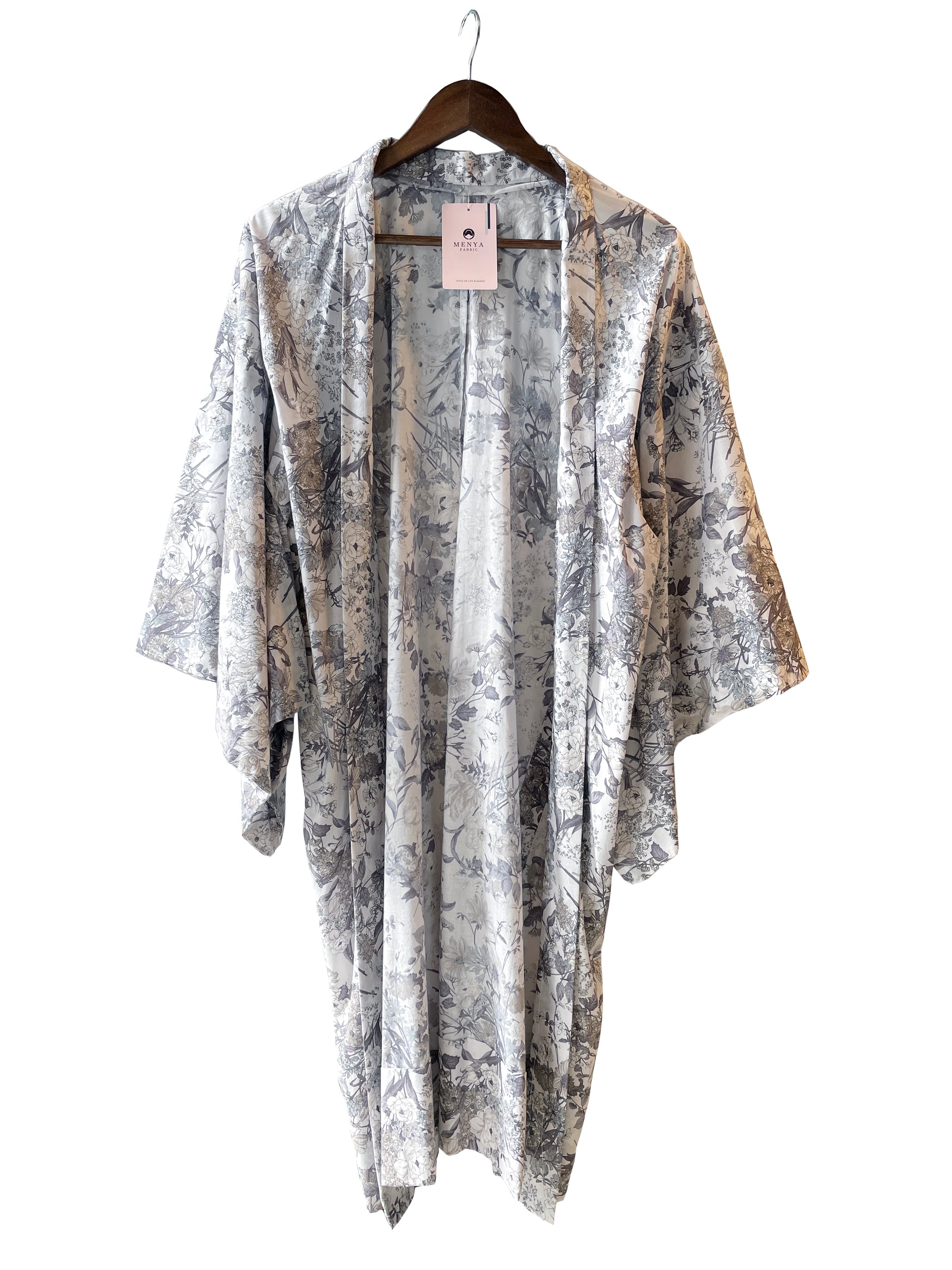 | 綿ローン60番手のファブリックにプリントで花を散らしたエレガントな木綿羽織です。気地厚は薄めで風合いはなめらか。初秋から晩春までモダンなスタイリングに使えます。軽くサラッと、大人好みの上品な「暮らしのキモノウェアー」をぜひお楽しみください。 |