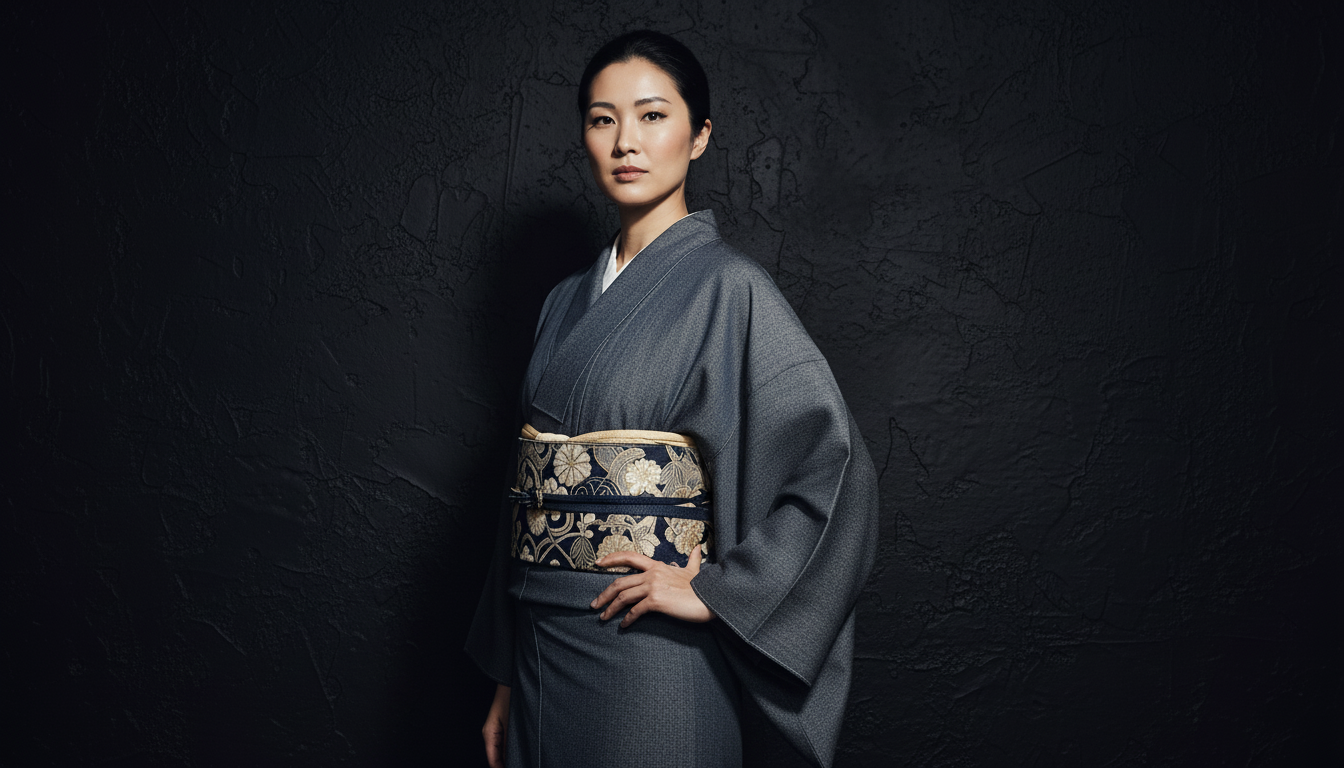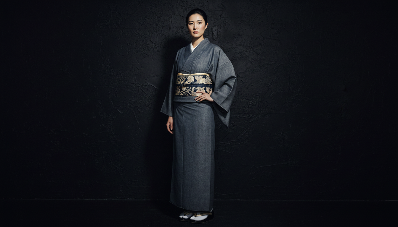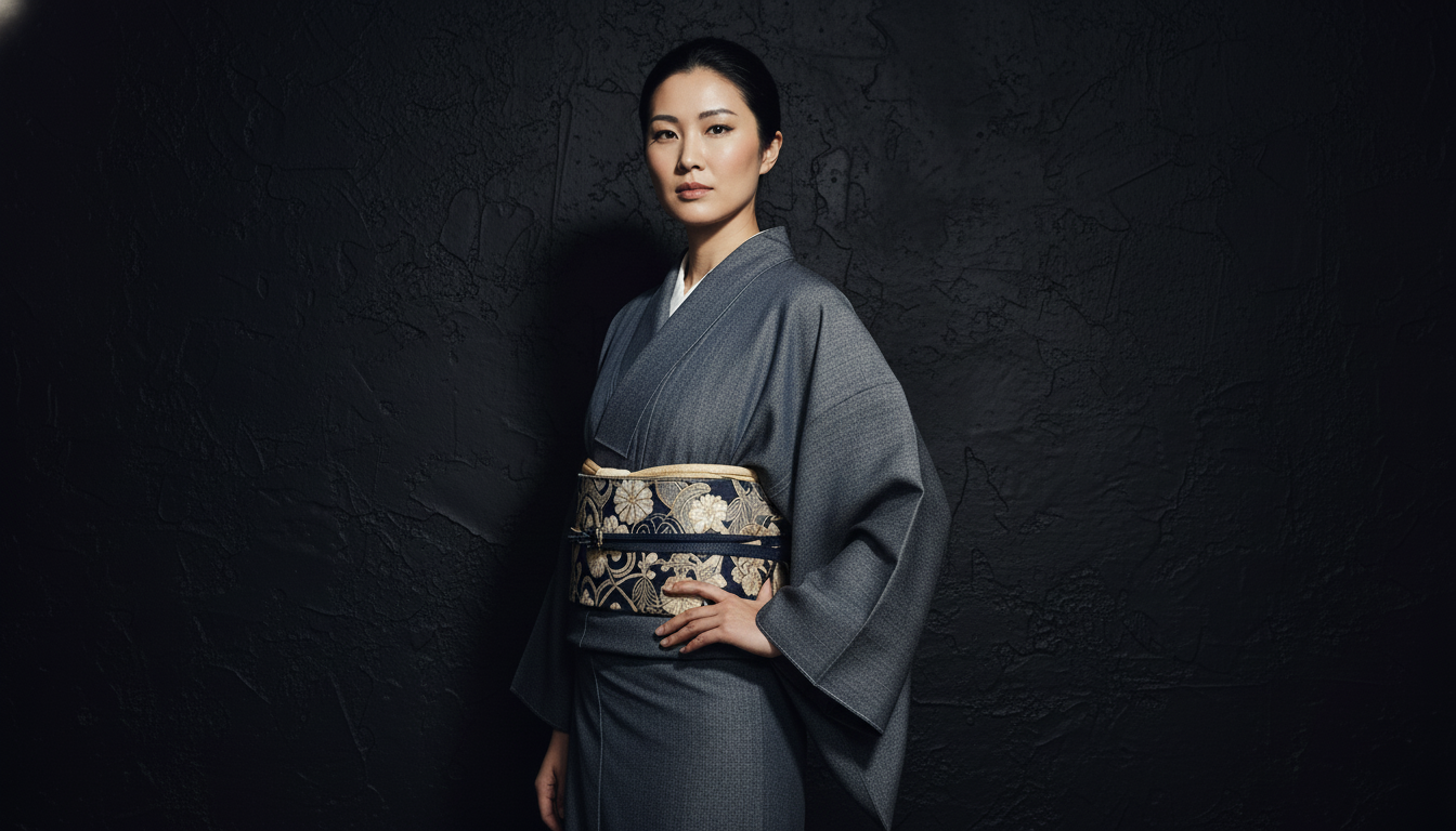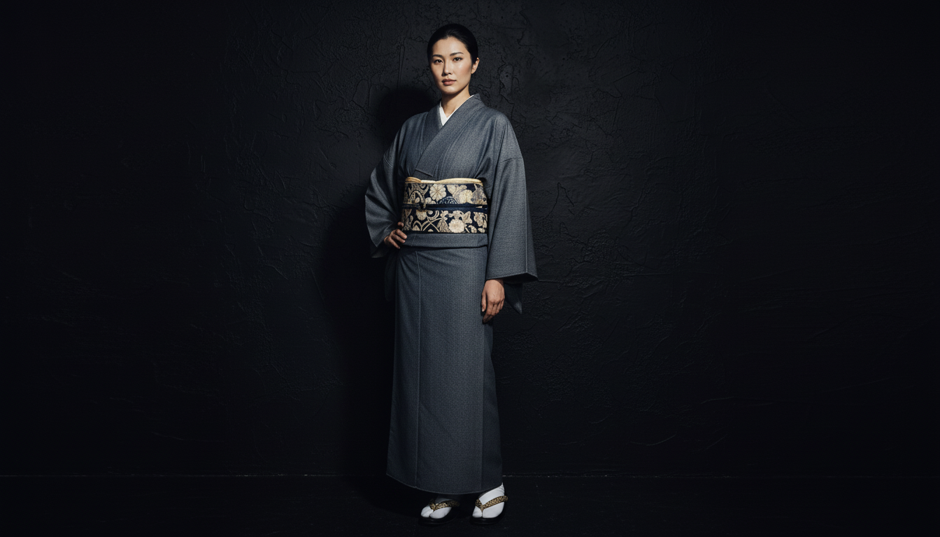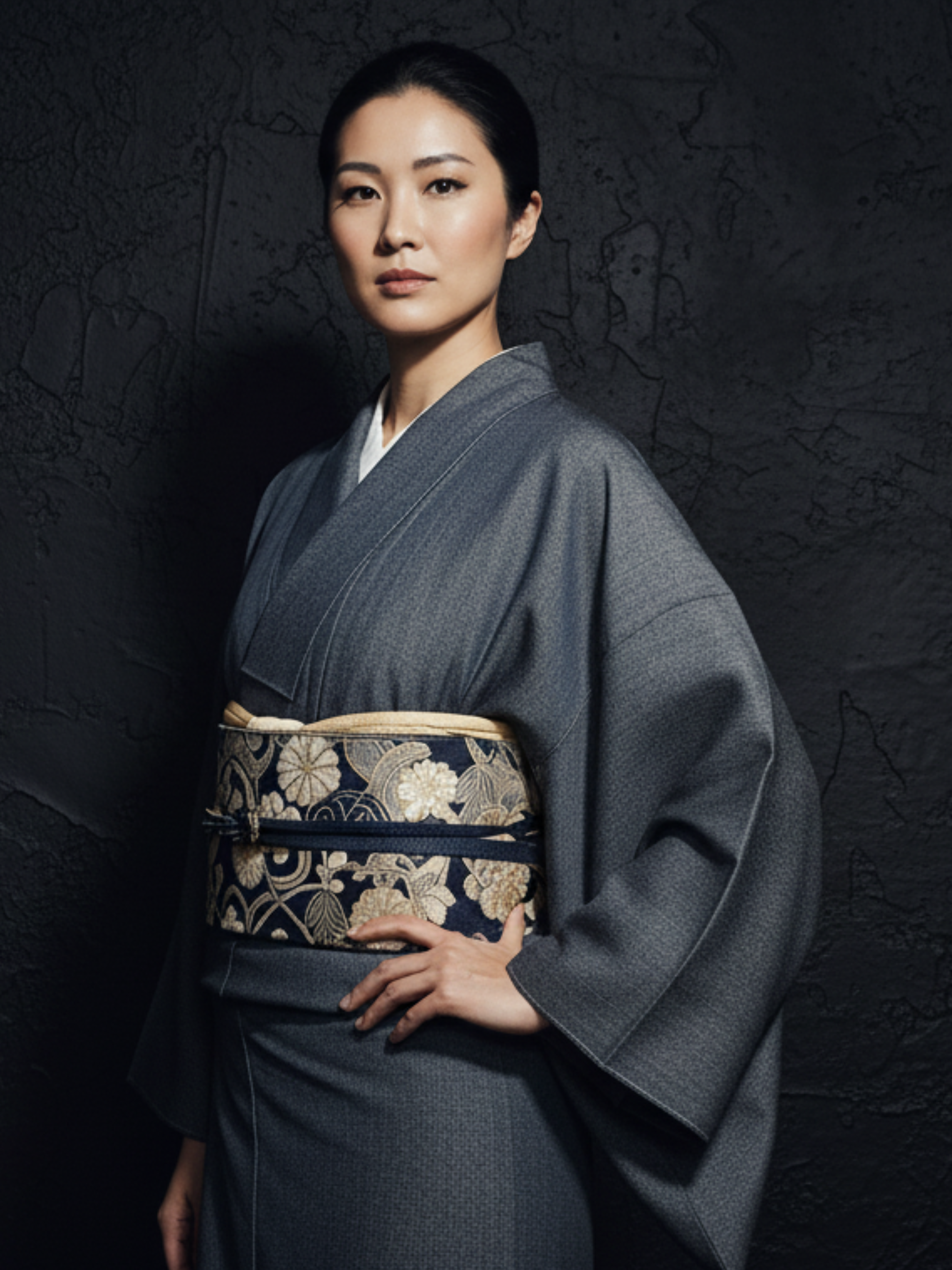 上質で洗練されたタッチのエレガントなデニムキモノ。